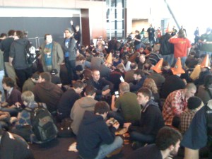 Familiar with the comic stylings of Penny Arcade Expo’s creators, Jerry Holkins, Mike Krahulik, and their webcomic Penny Arcade, I ensured that I would be up to date on what was happening with this convention and what I might expect. The idea that there might be tens of thousands of people in one place at one time who could easily point out my knowledge failings when it came to specific aspects of this culture was preparedly intimidating. After all, I am not a geek right? So this mega ultra geek con would surely be yet another way I would be deemed an outsider. My research took me to twitter, to ustream, to various website forums and what I found out was that there are a lot of really interesting and talented people out there who share one or more of my interests. If it wasn’t my interest in over the top theatrical gameplay, or franchises that I have stuck with for nostalgia reasons, then it was a shared love of art crazy stories or the evolution of the internet and technology. People online are generally awesome but how would that translate to real life? I feared.